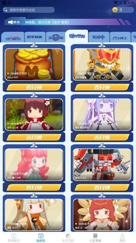 3、各门游戏的皮肤都在这里,可以通过积分兑换喜欢游戏的皮肤。