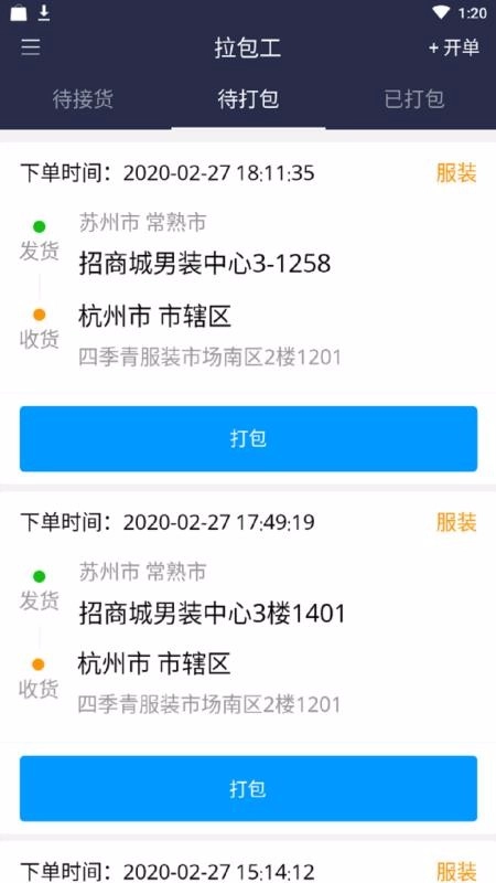 工作人员能够在没有接货的下方选择接单,点击进行接货做单;