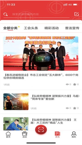 点击“活动”选项,就可以查看工会最新的活动信息。