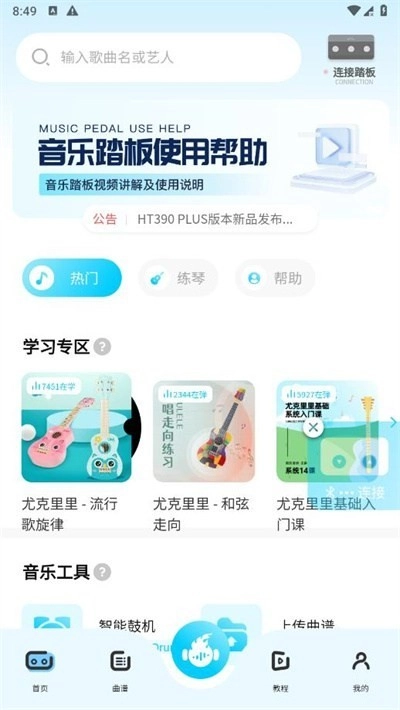 1、在首页区域,你可以看到各类曲调的学习资料以及音乐工具。