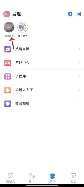 1、进入软件的发现页面,点击创建动态选项以启动动态发布流程。