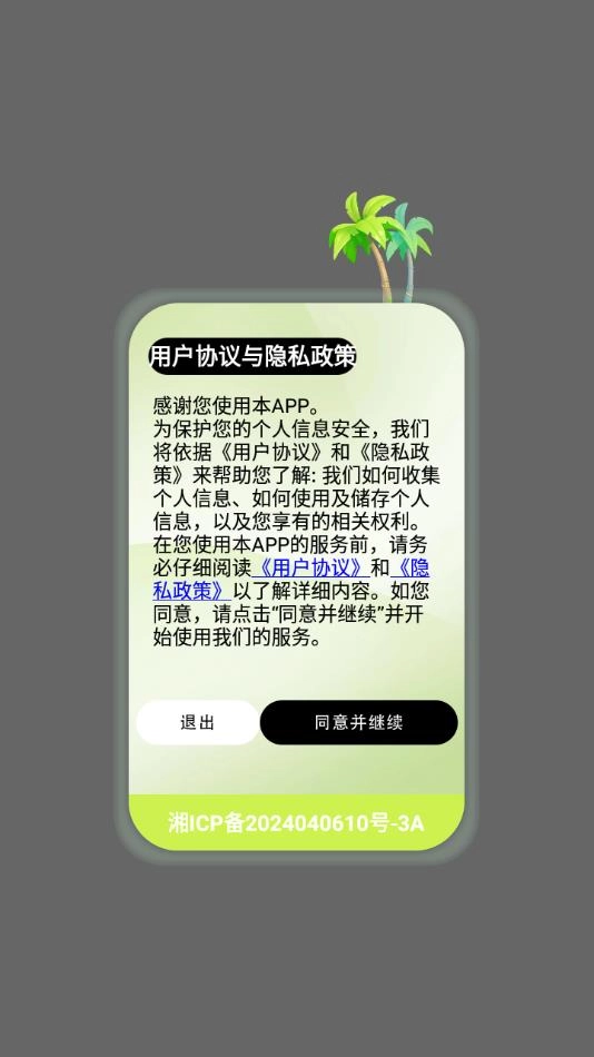 1、安装软件并打开后,点击同意用户协议与隐私政策。