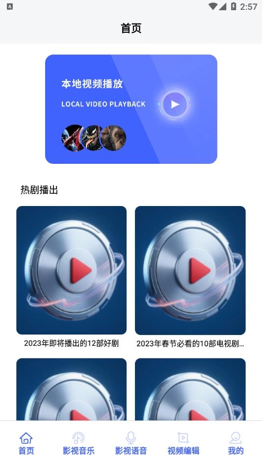 2、涵盖本地视频播放、热剧推荐,还有影视音乐专辑、经典影视语音梗集合,全方位覆盖。