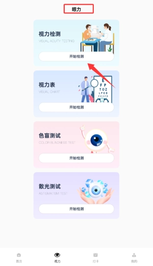 进入应用后,在首页找到并点击“视力检测”功能模块,即可进入测试准备页面。