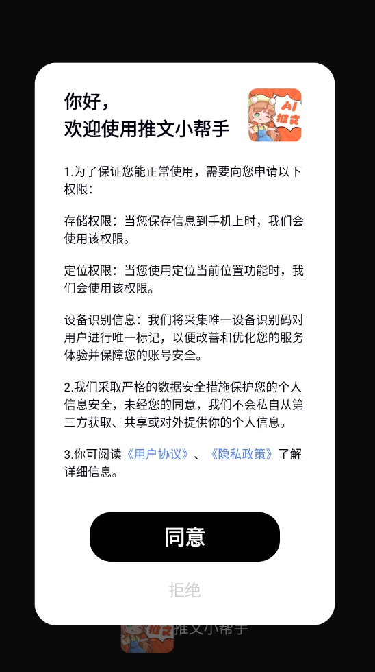 1、安装后打开软件,提示同意与否,点击同意进入注册界面;