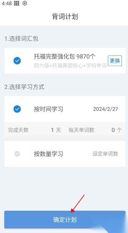 3、选择一个适合自己的学习计划,点击确定计划