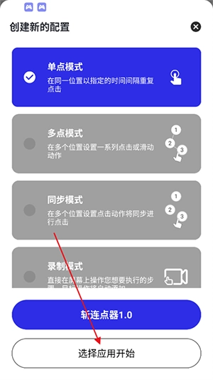 3、选择应用后,点击下方的斩连点器1.0即可。