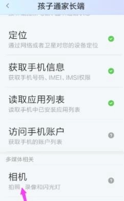 5、然后找到相机的选项,点击打开。