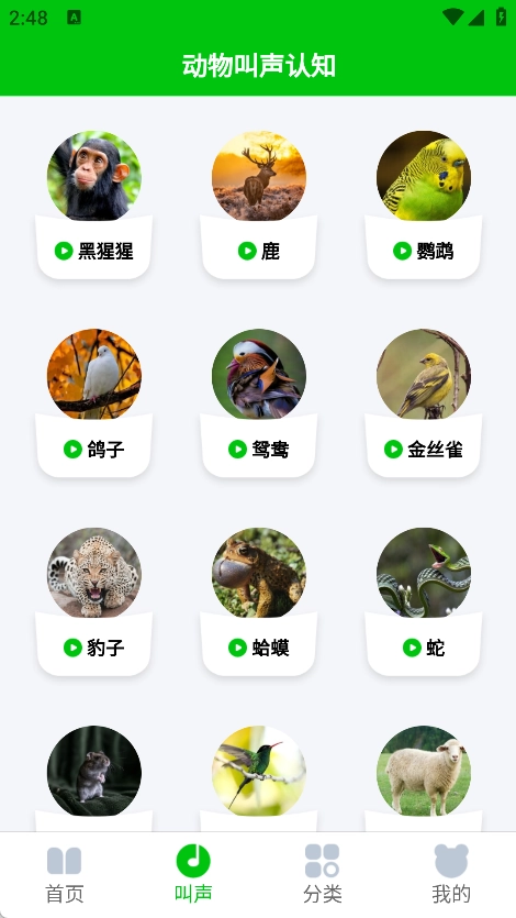 2、在叫声页面中可以了解不同的动物声音,可以及时了解不同的声音信息。