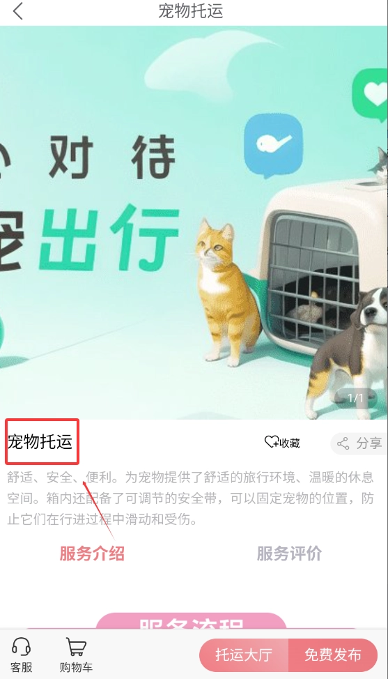 2、进入宠物托运,了解具体详细流程,点击进入即可。