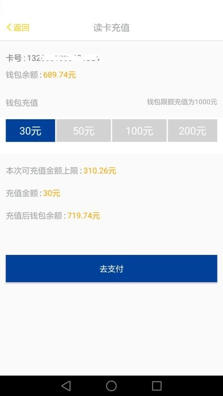 3、普通用户应用,可对公交卡、市民卡进行充值,然后去线下机具进行贴卡操作,进行充值。