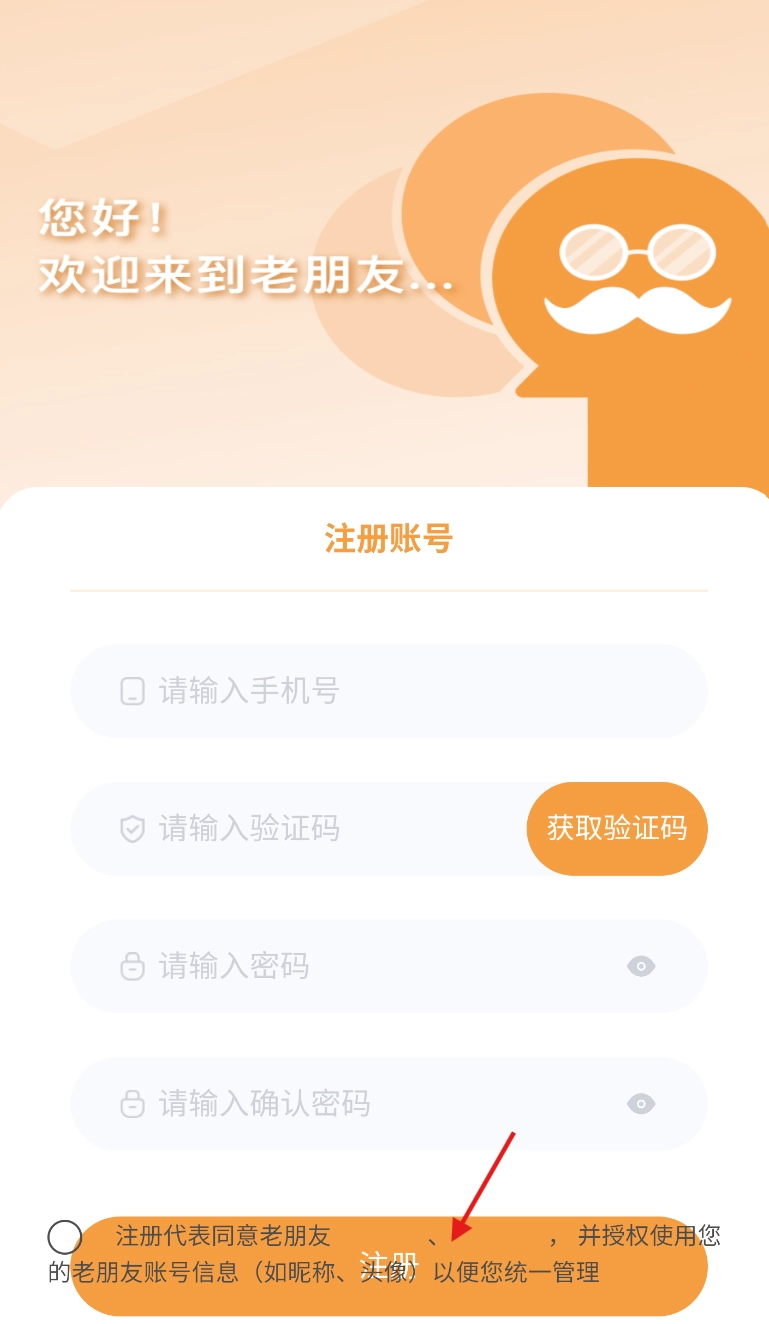 1、安装:在手机应用商店搜索 “老朋友”,点击并按照提示完成安装步骤。