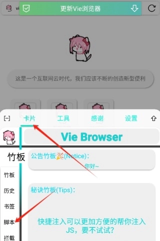 vie浏览器是由网友魔法ソジュ アイ自制的手机浏览器软件,用户通过这款手机版浏览器能第一时间精准搜索指定内容。它不仅安装包小巧、界面简洁,还支持添加脚本等功能,可满足用户自定义浏览器设置的需求,带来更优质的使用体验,感兴趣的用户不妨下载体验。