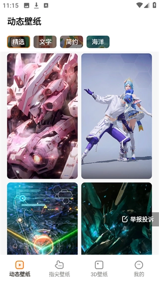 2、点击下方的“动态壁纸”,包含了文字,海洋等类型的壁纸。