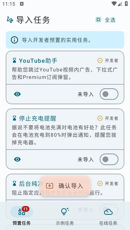 1.在完成自动任务的同时,还具备关机、设置静音等常见手机管理功能,全方位辅助用户管理设备。