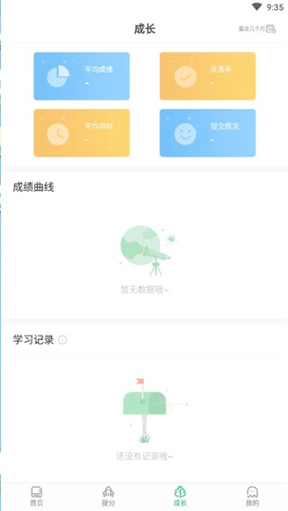 4、点击成长一栏可以查看成绩记录,平均成绩,并将成绩以统计图的形式直观展现出来。