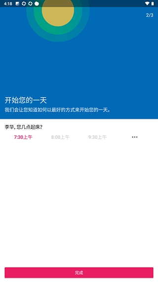 2、设置好自己的起床时间,点击完成进入软件。