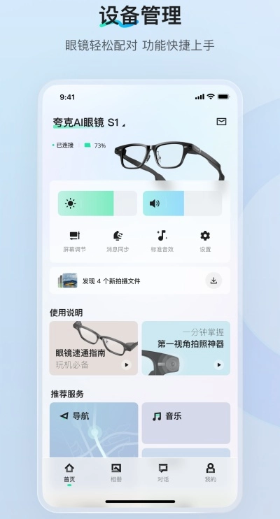 连接配对:用户可借助该功能查找并绑定智能眼镜,以便轻松使用夸克AI眼镜的各类功能。