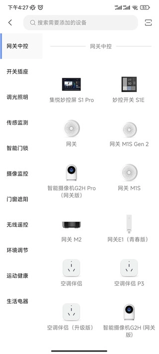 3、多种设备分类清晰,可一目了然的进行选择,也可以通过搜索需要添加的设备。