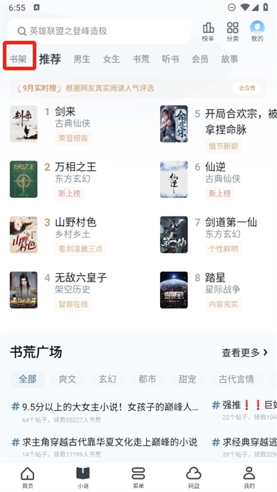4、接着在返回刚才的页面,可以看到在这里有个书架栏目这就是所有的书架了;