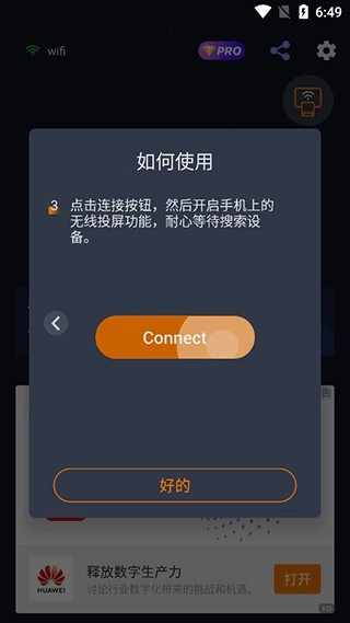 自动检测,自动检车你的投屏设备是否连接wifi,没有连接会自动为你进行提醒。
