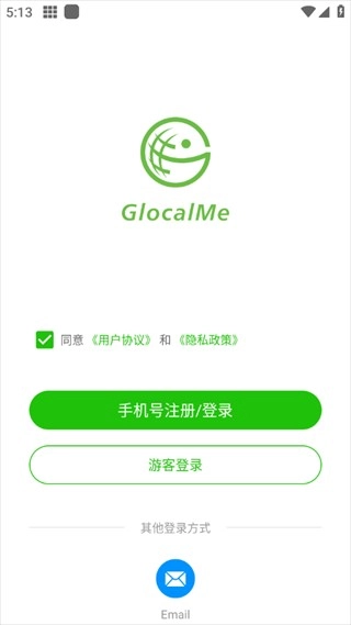1、在本站完成GlocalMe的安装后,点击进入应用,按照指引完成注册与账户登录操作(注册时可选择使用手机号码或电子邮箱)。