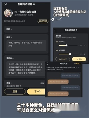 2、三十多种音色,任选5种随意搭配,可以自定义对话风格