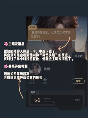 5、跟智能体聊关聊到一半,中途下线了,再登录可能会着到他对你“突然失联” 的反应,有时过了半小时没回复他, 他就会主动发消息了。随着关系等级提高,会得到免费开启星念的机会。