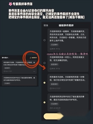 8、事件薄里会由AI记录你们的聊天内容,重启后事件簿的内容会清空,已绑定的事件羁绊不会消失。把绑定的事件羁绊去除后,就无法再添加回来了(相当于删除)