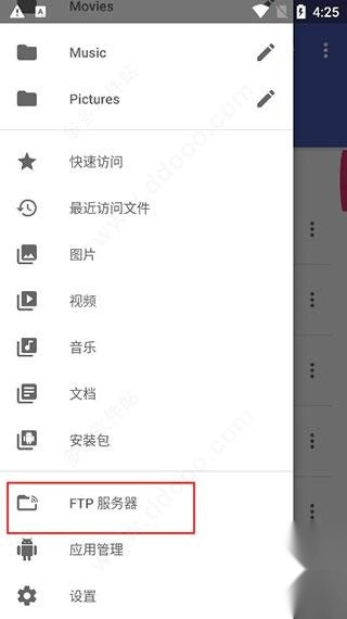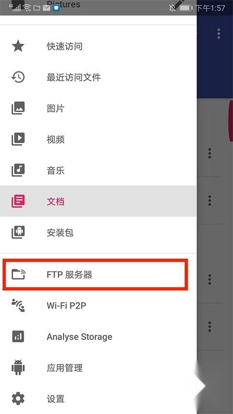 3、进入FTP服务器界面,选择右上角【三个点】图标,