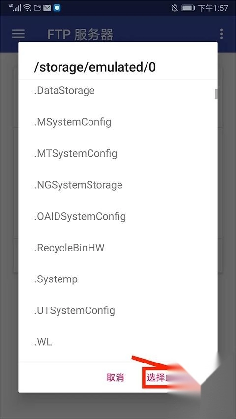 5、进入到文件夹选择界面,选择需要传送的文件所在的目录,点击右下角选择此文件夹,