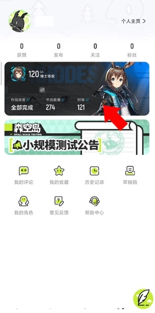 点击资料卡,随时查看自己的角色、皮肤等信息。