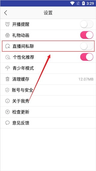 我秀娱乐直播怎么关闭开播提醒和直播间私聊