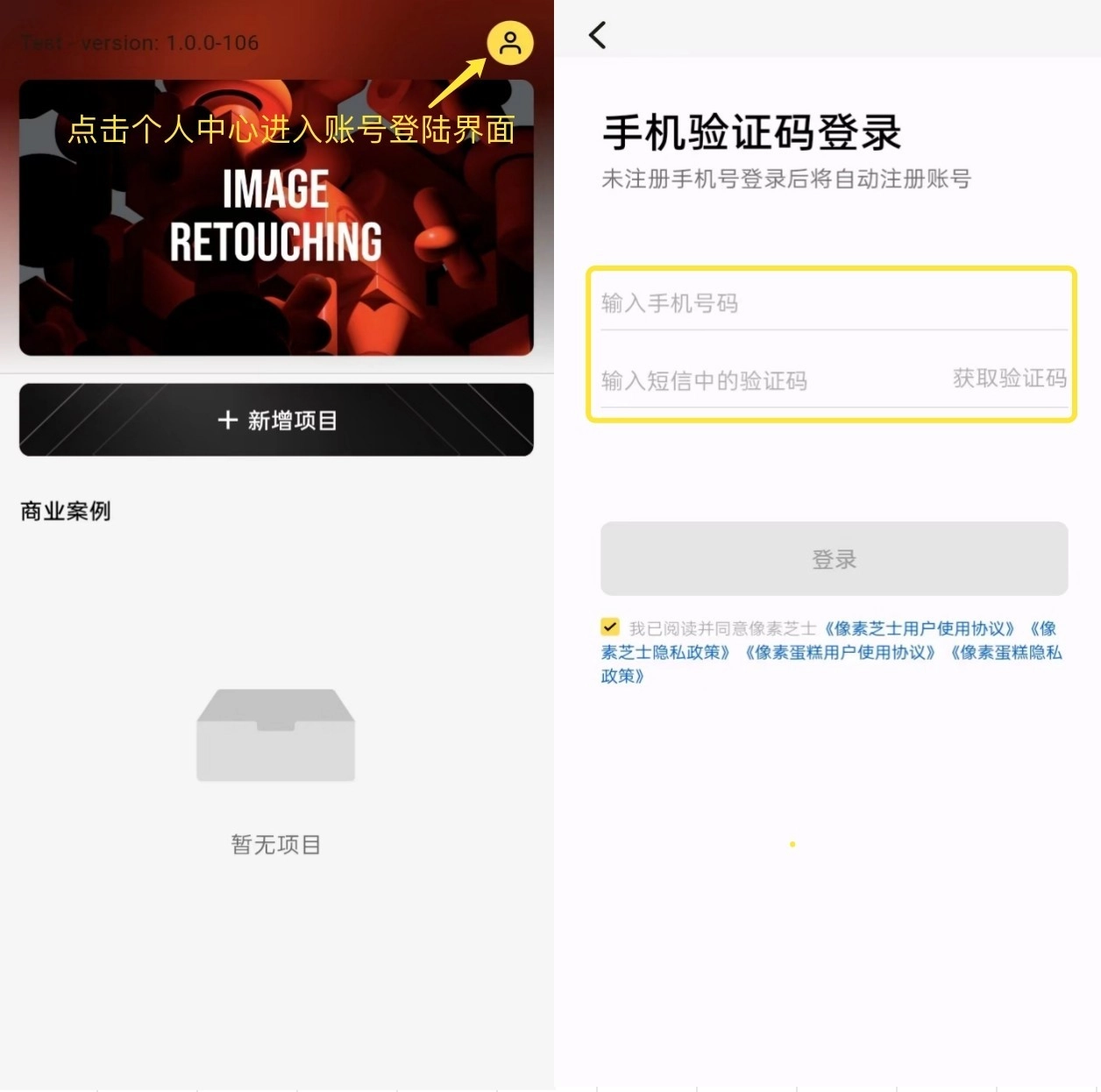 2、新用户在使用像素芝士前,需要先注册登录自己的账号。
