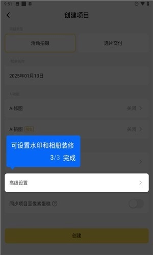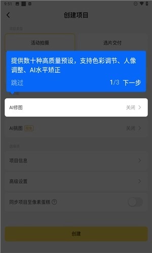 4、用户可以选择是否启用人工智能照片编辑。一旦启用,项目中的所有图像都将被编辑。