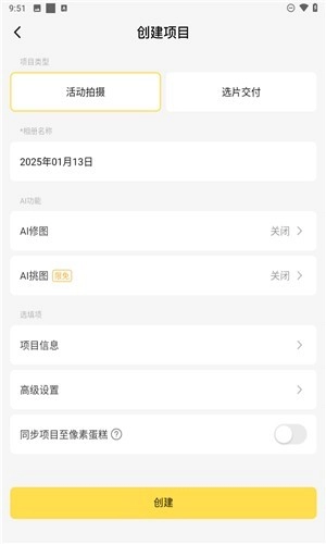 5、进入创建项目界面,点击“创建”即可增加新的项目内容。