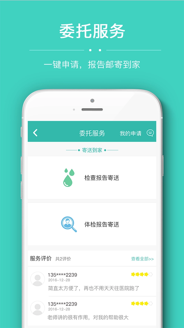 1. 委托服务:申请一次,报告邮寄回家;