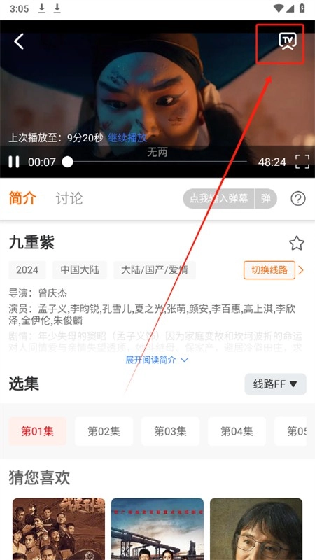 进入视频播放页面,点击【投屏】图标。