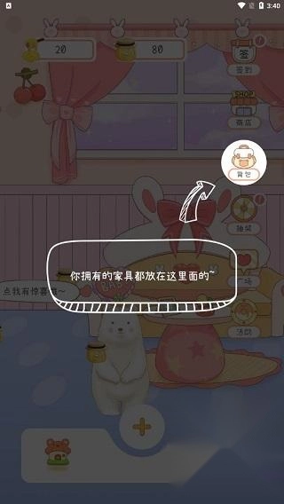 你所拥有的家具都将放在背包里,点击背包可以查看。