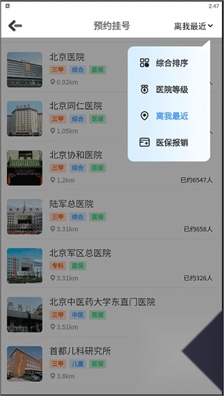 2、进入预约挂号页面,选择医院,也可按要求精确选择医院