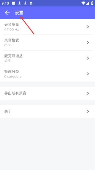 2、点击设置图标进入设置页面,可看到录音质量、格式、麦克风增益等多种设置选项,方便个性化调整。