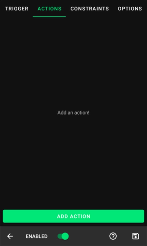 接下来,是时候选择一个动作了。如果您有一个大屏幕,您会在屏幕底部看到“添加操作”按钮。否则,点击屏幕顶部的“操作”选项卡,然后您将看到“添加操作”按钮。