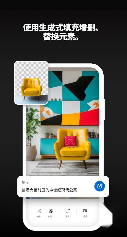 添加新内容、替换背景,甚至使用生成填充删除不需要的元素。