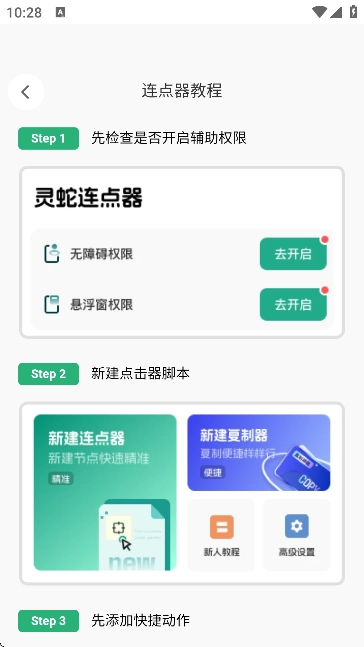 灵蛇连点助手【02-17更新】是一款面向安卓设备的自动化点击工具,核心功能是模拟人工点击,助力用户完成重复性任务的自动化处理。2025年最新版的灵蛇连点助手手机端,配备了连点控制、手势录制、脚本编写等实用功能,能让用户轻松实现重复操作的自动化运行,有效提高操作效率。用户可自由拖动屏幕上的定位标识,精准锁定需要点击的区域,保证点击动作能准确触发游戏技能按键、应用内特定功能选项等目标。不管是日常使用的普通用户,还是进行开发工作的专业人员,灵蛇连点助手都能适配其需求,堪称一款兼具实用性与便捷性的工具。