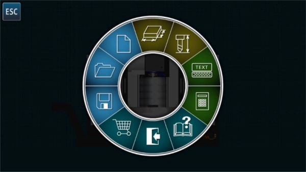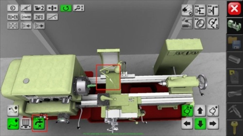 你会看到左边、右边和左下方都有功能选项,点击左下方红色箭头指向的地方,这个是用来切换cnc数控车床仿真模拟器不同的视角,从不同视角来熟悉这款机器。