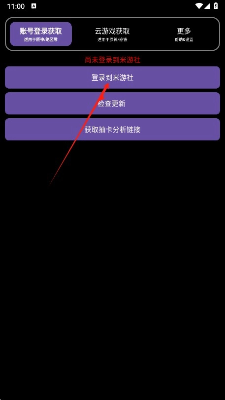 2、进入后我们首先登录到米游社,只有这个登录了才能知道你用的什么账号玩的游戏。