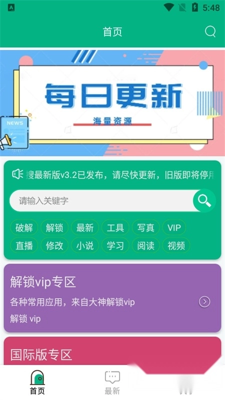 1、蓝搜5.7有非常多丰富的应用可以选择,包含了vip解锁专区等