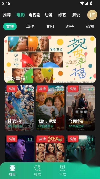 荐片安卓版是一款界面清爽、功能强大的影视观看软件。用户可以在软件中获取各种题材内容的优质好片,点击即可免费进行观看,无论是电影、电视剧,还是番剧综艺,总有一款适合你!