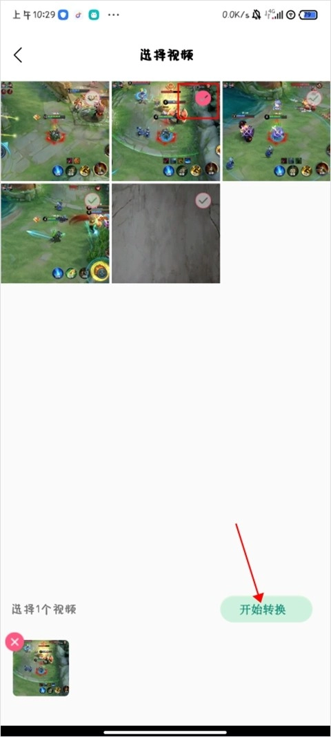 2、进入到选择视频页面,勾选需要用到的视频,点击“开始转换”按钮;