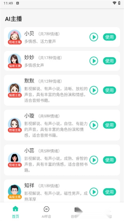 AI配音:支持多人配音,拥有多款情绪丰富的AI主播,配音作品提供免费多平台同步,可以随时随地,在不同平台完成配音。